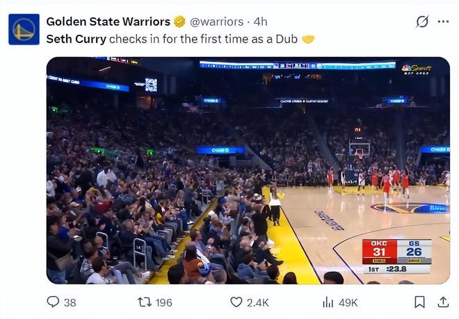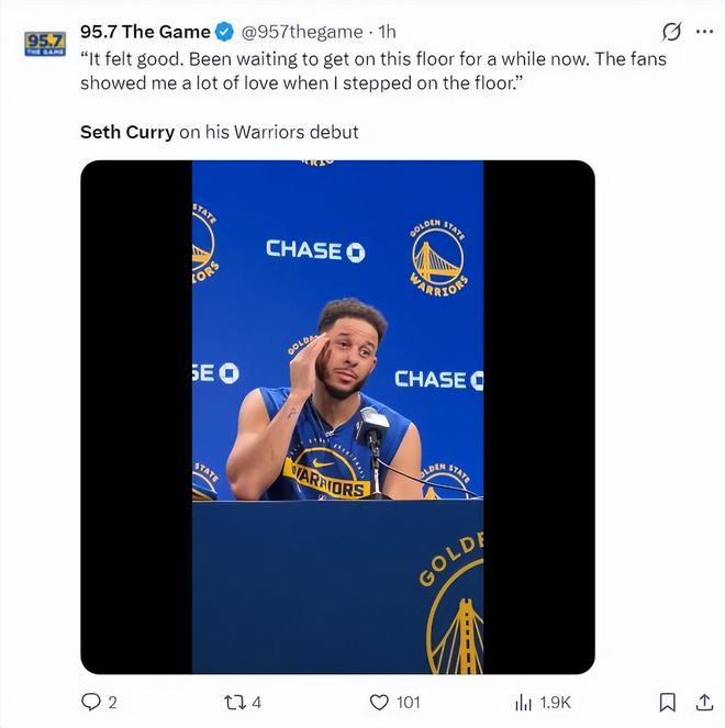 赛后小库里接受采访:感觉很棒,我一早就盼望着登场这个场地了,当我踏上球场时,球迷们给了我很多鼓励与支持。