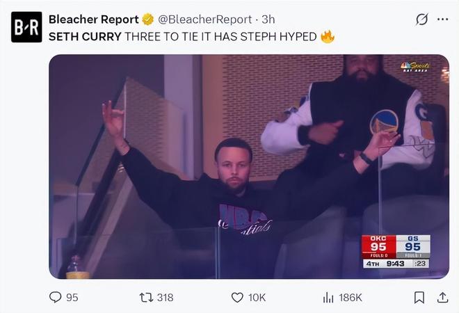 塞斯的哥哥斯蒂芬在看台也不遗余力的为老弟加油、助威,塞斯命中扳平的三分球时斯蒂芬张开双臂为老弟庆祝。